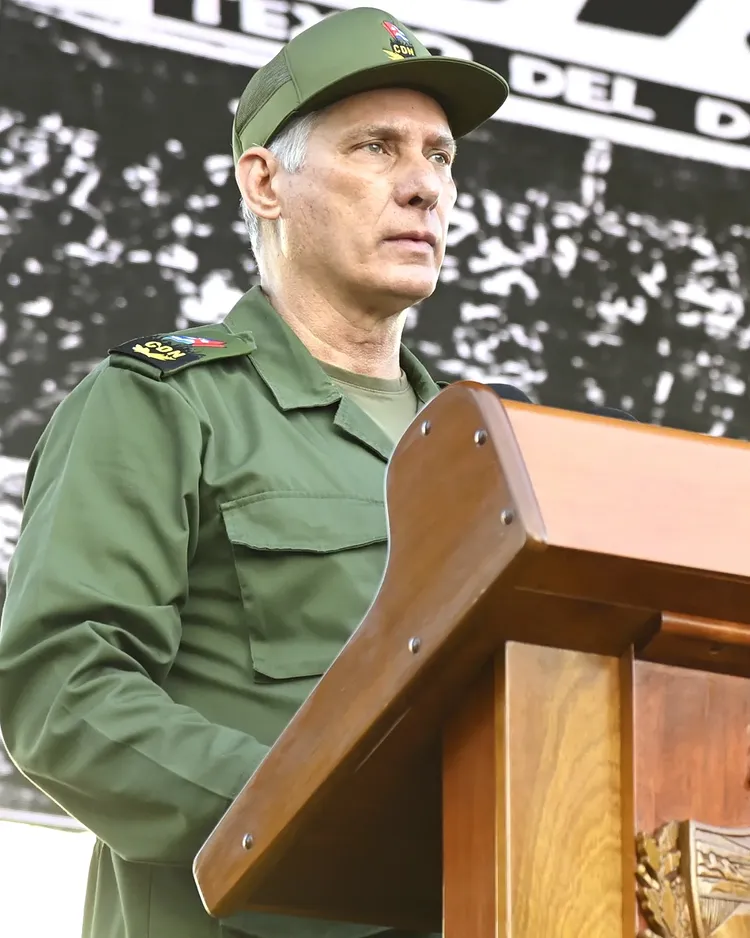 -Desde esta histórica tribuna, donde todavía resuenan las palabras de Fidel convocando al pueblo a buscar su sitio para el combate por venir, y donde hoy rendimos un merecido tributo y homenaje a los héroes y los mártires de aquel día en que la Patria vistió decidida el uniforme miliciano, convocamos a un movimiento nacional a internacional de solidaridad, que lleve a cada rincón del planeta la verdad de Cuba, el sufrimiento del pueblo por acciones del bloqueo, y guerra económicamente multidimensional, agravada por el bloqueo energético, lo que califica de genocidio por los niveles extremos de privaciones a los que estamos sometidos todas las cubanas y todos los cubanos.