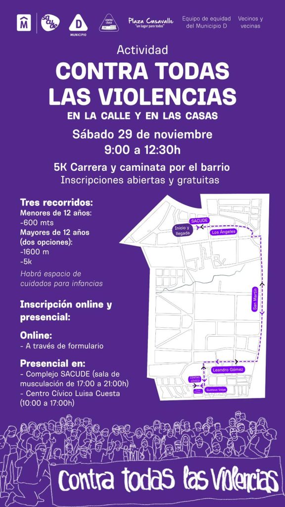 En el marco de las actividades por el Día Internacional de la Eliminación de la Violencia contra la Mujer, fecha que se conmemoró el 25 de noviembre, se realizará una corre caminata para correr y caminar por el barrio Casvalle en contra de las situaciones de violencia que se viven.