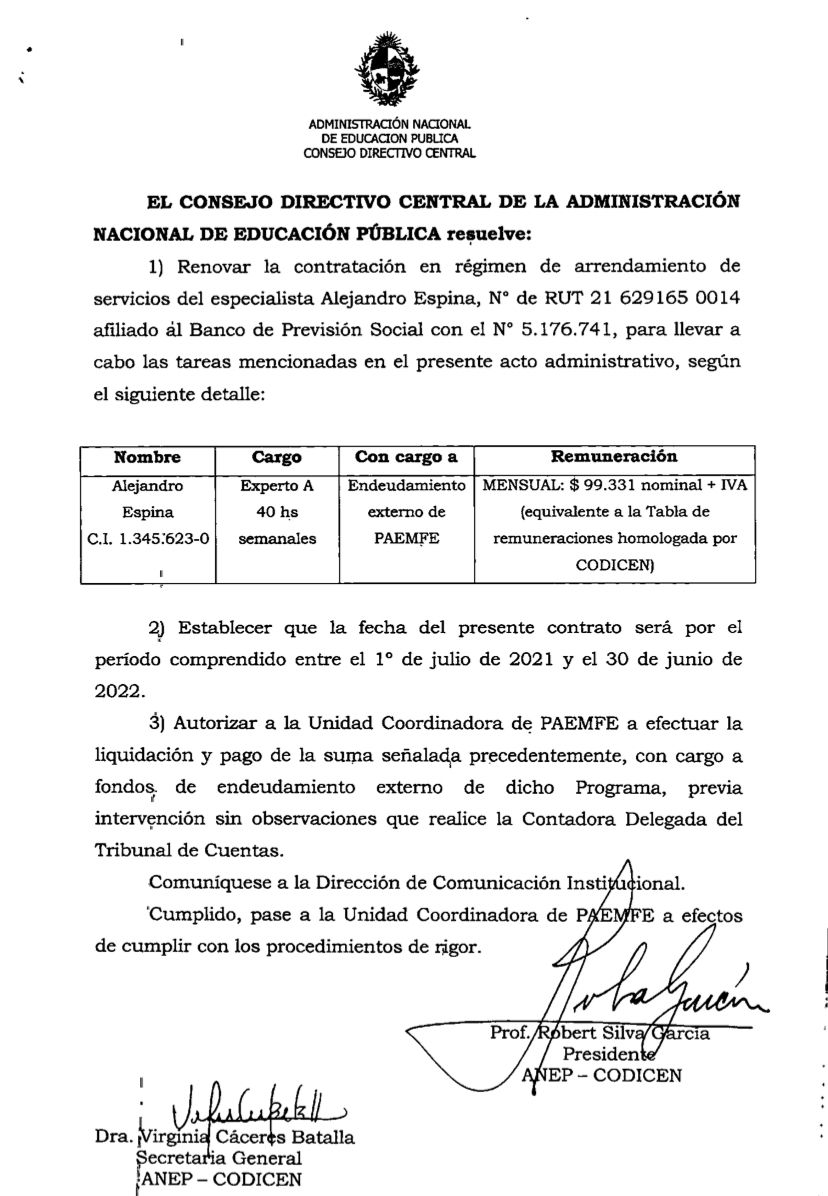 En ese sentido el gremio recuerda “que la Anep tiene un departamento entero de Comunicación Institucional. Sin embargo, contrata a @aespinaUY con un sueldo de casi 100.000 pesos mensuales. Como para no hacer acaloradas defensas”.