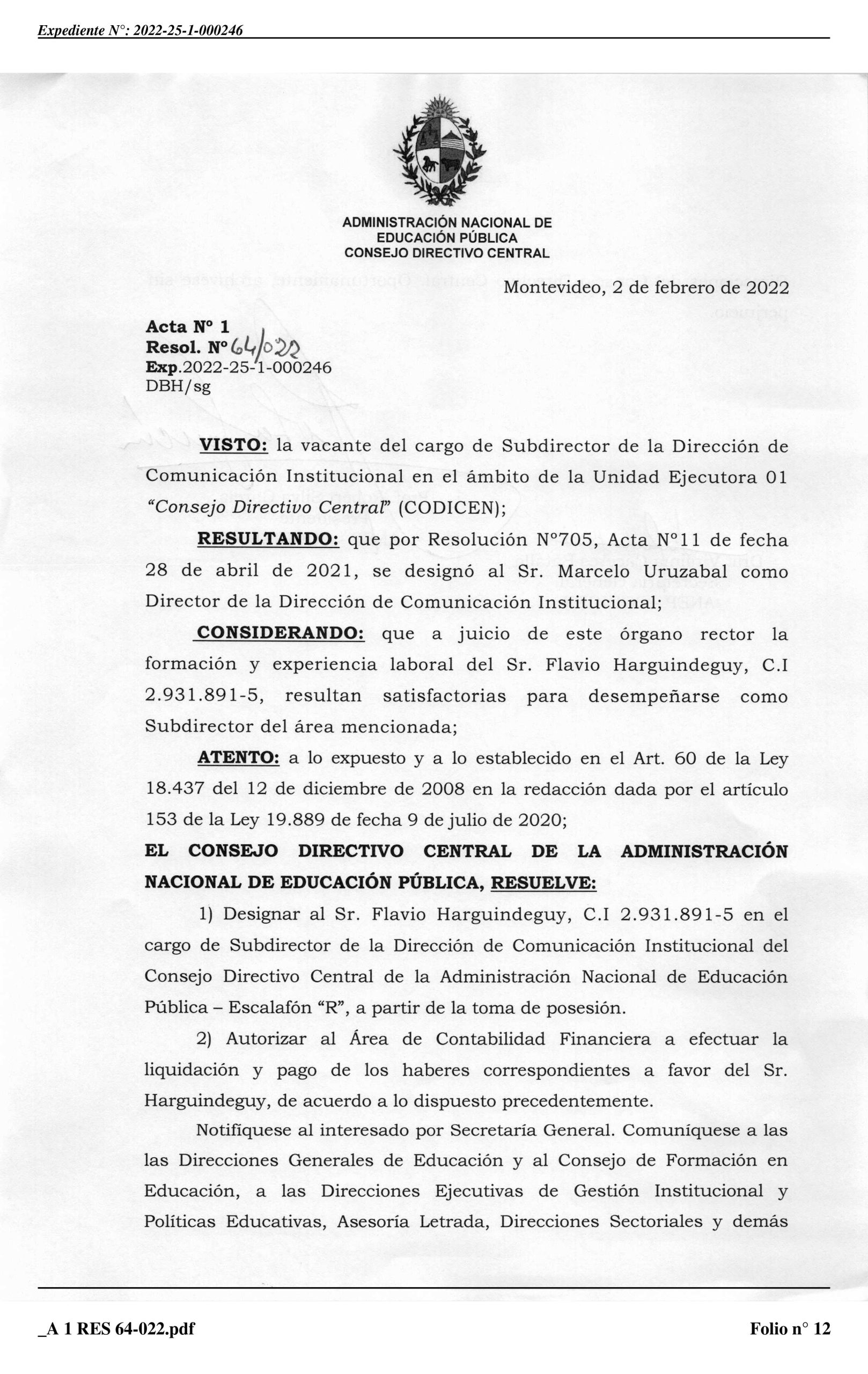 Seguidamente se presenta un segundo caso de “acomodo”, en este caso el de Flavio Harguindeguy.