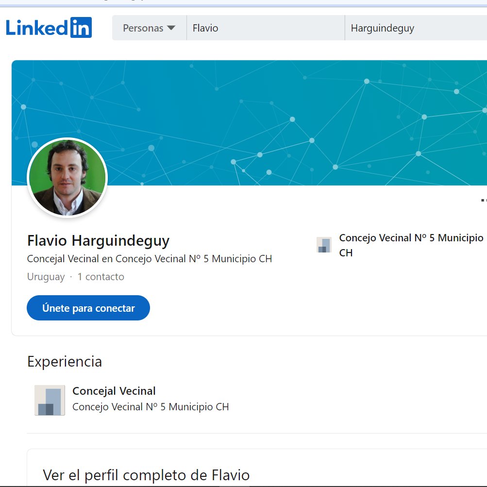 “Parece que «la formación y experiencia laboral del Sr. Flavio Harguindeguy…, resultan satisfactorias para desempeñarse como Subdirector del área mencionada. No sabemos en base a qué méritos se consideró satisfactoria la formación de @FHarguindeguy para el cargo de Subdirector de Comunicación” y se presenta una captura de pantalla de la información pública de su cuenta de Linkedín.