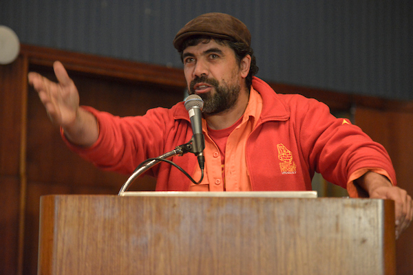 Daniel Diverio durante el acto del SUNCA frente al Ministerio de Economía en Montevideo. Foto: Javier Calvelo/ adhocFOTOS.