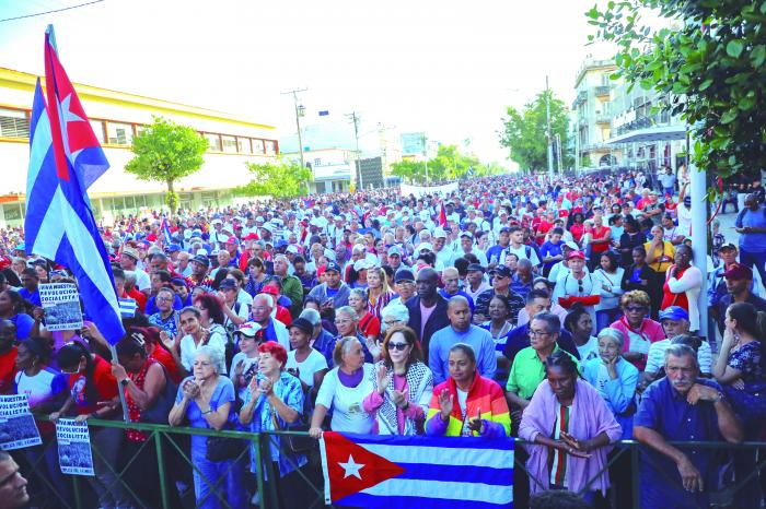 Desde esta histórica tribuna, donde todavía resuenan las palabras de Fidel convocando al pueblo a buscar su sitio para el combate por venir, y donde hoy rendimos merecido tributo y homenaje a los héroes y los mártires de aquel día en que la Patria vistió decidida el uniforme miliciano, convocamos a un movimiento nacional e internacional de solidaridad que lleve a cada rincón del planeta la verdad de Cuba, el sufrimiento del pueblo por acciones de bloqueo y guerra económica multidimensional, agravada por el bloqueo energético, lo que califica de genocidio por los niveles extremos de privaciones a los que estamos sometidos todas las cubanas y todos los cubanos.
