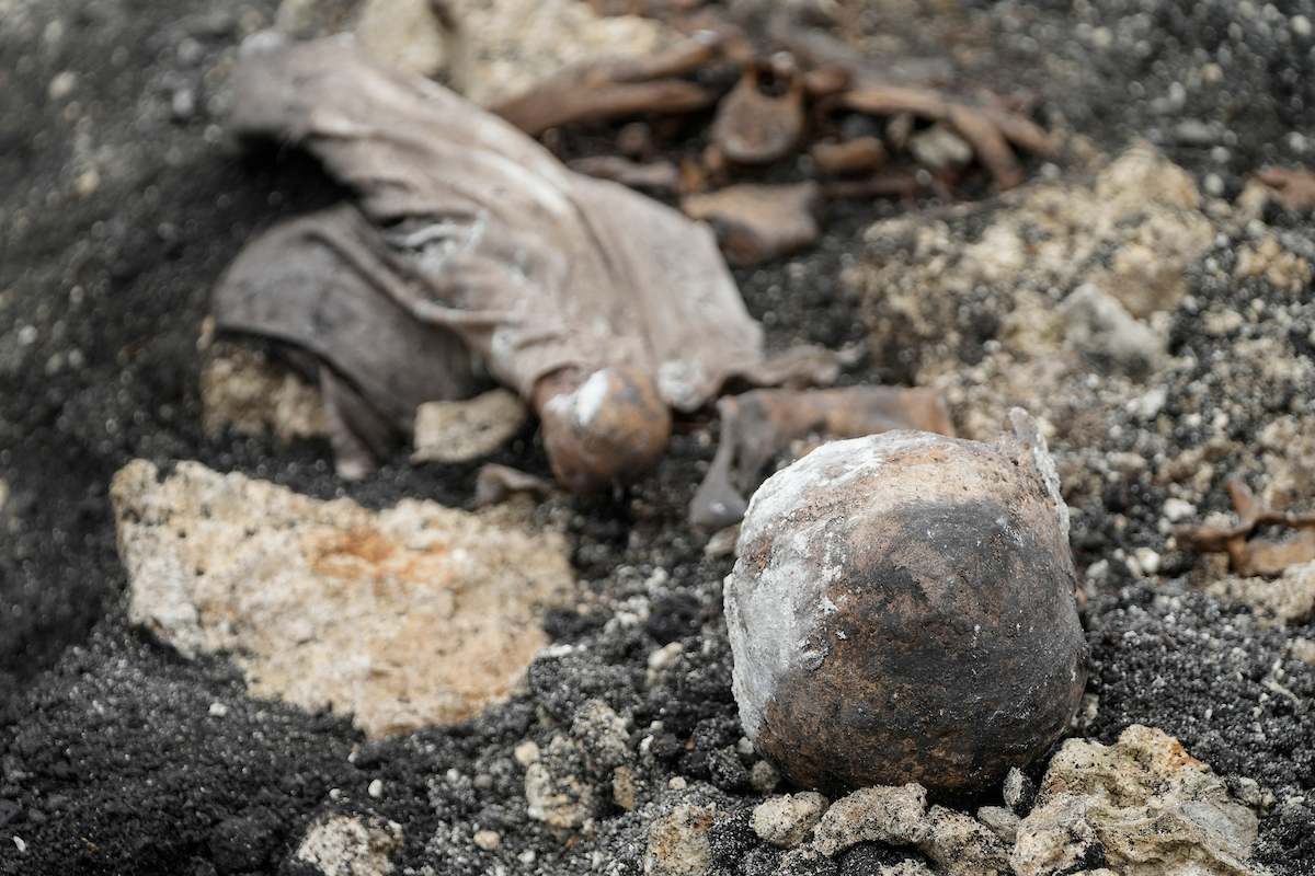 El último hallazgo en el Batallón 14 realizado por el GIAF donde se puede apreciar un esqueleto casi completo y los restos de una camisa. Foto: Daniel Rodríguez /adhocFOTOS Foto: Daniel Rodríguez /adhocFOTOS.