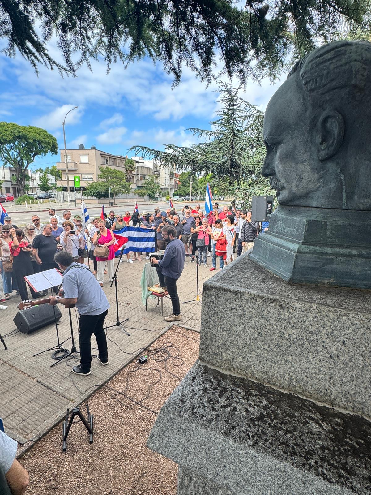 La actividad tuvo lugar en la Plaza Cuba de Montevideo, donde se ubica el busto que homenajea a Martí, que, entre muchas cosas, representó oficialmente a Uruguay como cónsul en Nueva York entre los años 1887 y 1892.