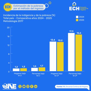 En el documento se señala que aunque la pobreza, medida por el ingreso de los hogares, bajó en el año 2025 respecto al año anterior, ya que pasó del 17,3 al 16,6% de la población.