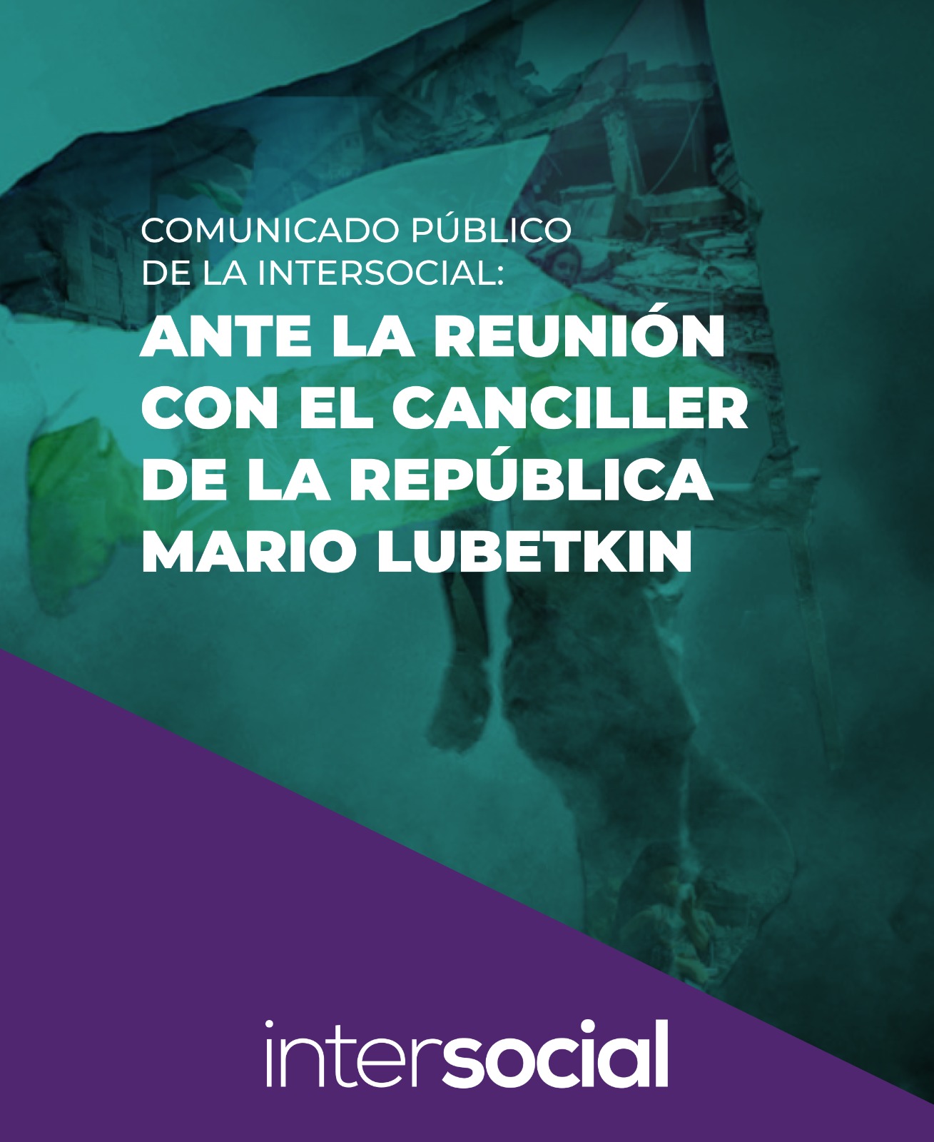 La Intersocial emitió un comunicado público en el que informó sobre los resultados de la reunión con el canciller de la República Mario Lubetkin en el que trataron » temas concernientes a la solidaridad y la ayuda humanitaria al pueblo palestino».