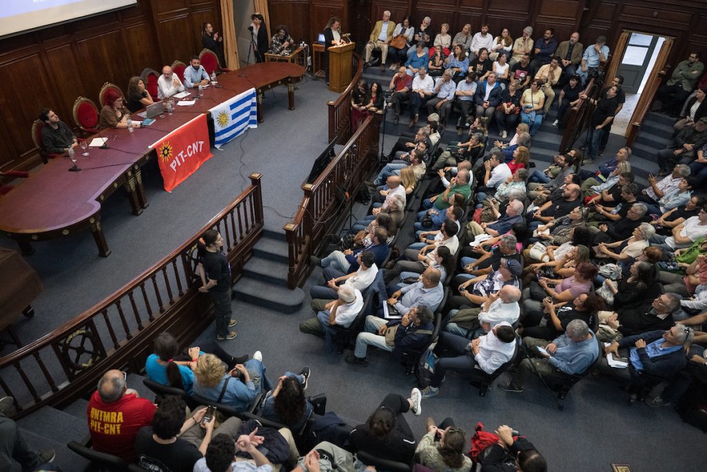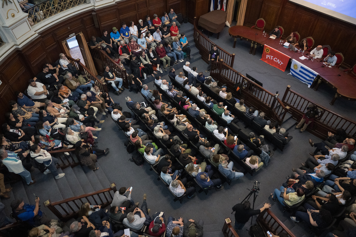 El Paraninfo de la Universidad de la República (UdelaR) se colmó en su capacidad en la presentación de la propuesta del PIT–CNT de una sobretasa al Impuesto al Patrimonio de las Personas Física (IPPF) del 1% más rico, destinada a financiar políticas que combatan la pobreza infantil y adolescente.