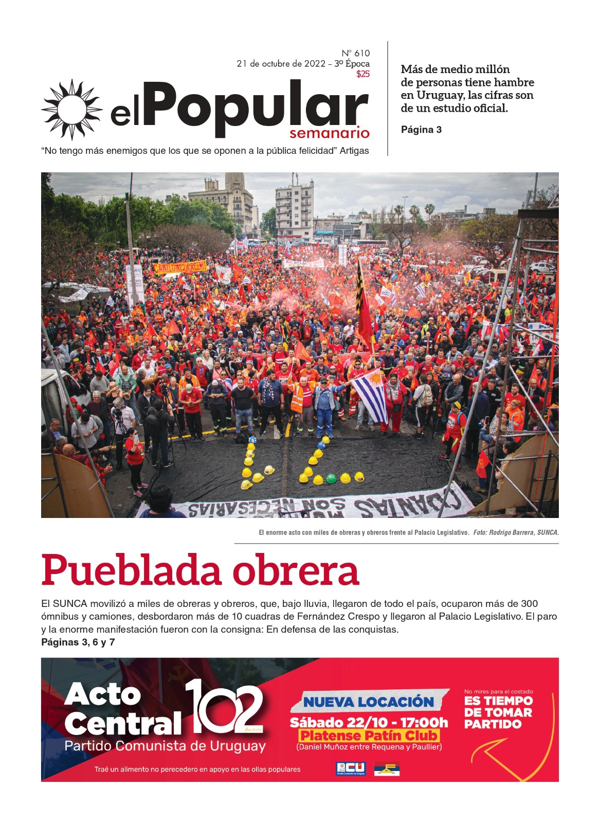 Miles de obreras y obreros, muchas y muchos con sus familias, vinieron de todo el país, a responder a la convocatoria de su sindicato: el SUNCA. Fueron tantas y tantos que se necesitaron más de 300 ómnibus y camiones para trasladarlos. Llegaron de los 19 departamentos, muchos viajaron largas horas para estar presentes. Bajaban de los ómnibus y los camiones y sin esperar ni un instante se plegaban a los cánticos y los saltos. Eran recibidos por sus compañeros y compañeras con aplausos. Y como si la enormidad del número de las y los participantes, su alegría, su fervor, no fueran suficientes, a todo eso se sumó la lluvia. Llovió fuerte y duro en el centro de Montevideo. Nadie se movió.