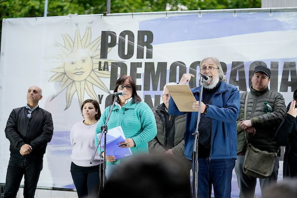 «Buenas tardes, compañeras y compañeros. El movimiento popular está nuevamente en las calles siendo fiel a su historia en defensa de la democracia, de los derechos de las y los uruguayos, y del legado artiguista que nos marca el camino.