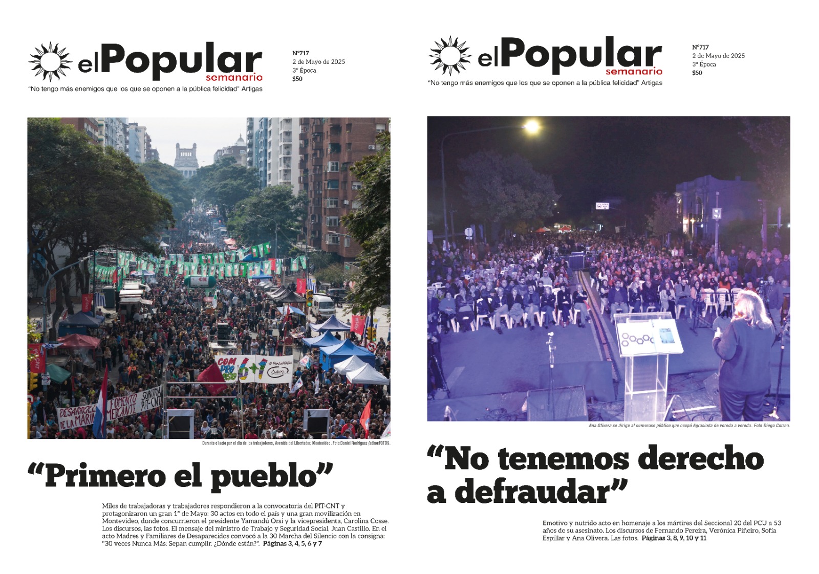 Las y los trabajadores, convocados por su central única, el PIT-CNT, protagonizaron una gran movilización en el 1° de Mayo. Bajo la consigna: “Primero el pueblo”, se realizaron más de 30 actos, en los 19 departamentos del país, homenajeando a los mártires de Chicago, reivindicando el papel que jugó la clase obrera en la recuperación de la democracia hace 40 años y planteando sus propuestas y reclamos para el presente.