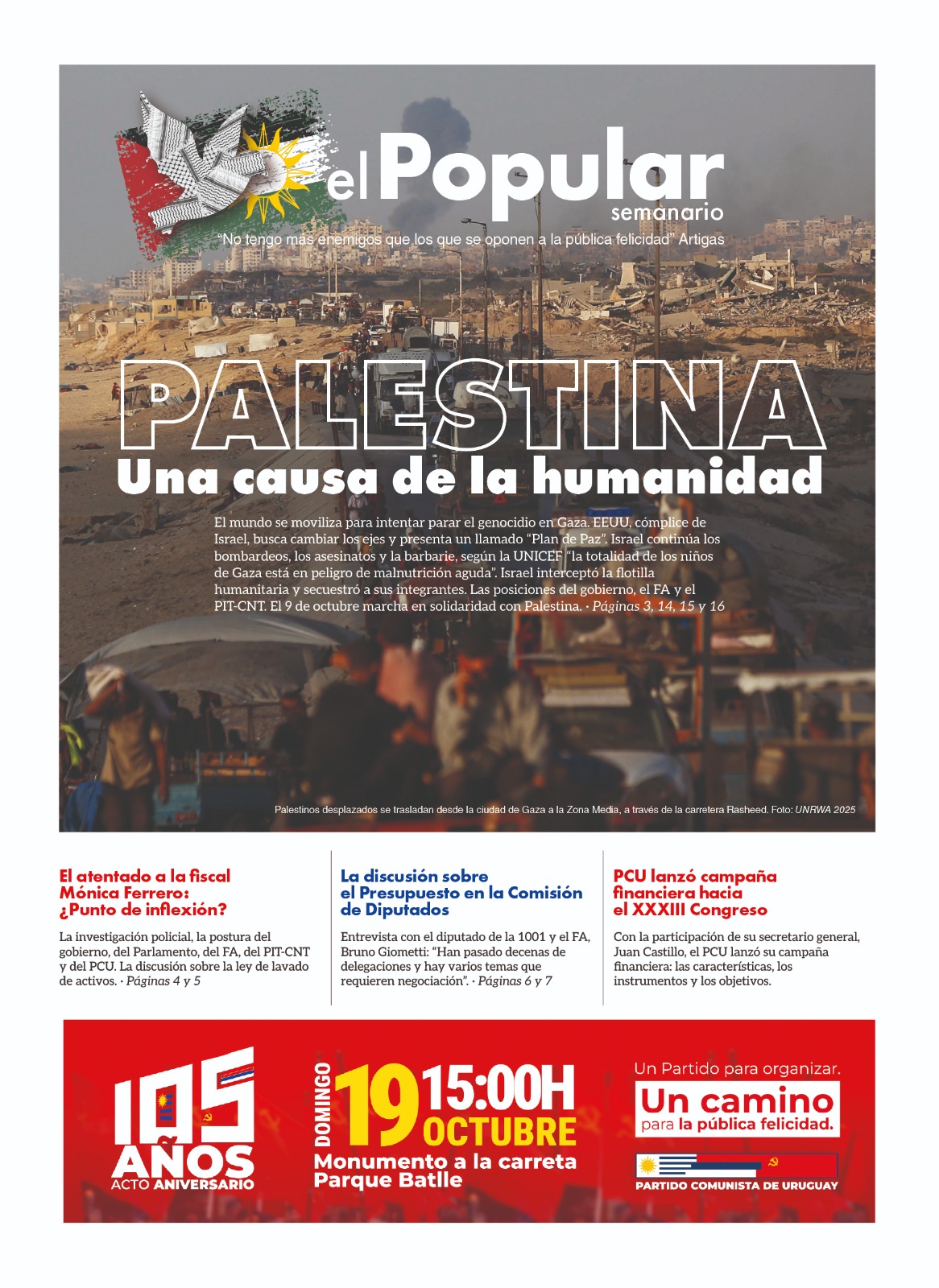 Hace 15 días la Asamblea General de la ONU votó, con 142 votos a favor, entre ellos Uruguay, 10 en contra y 12 abstenciones, reafirmar que es necesario construir una salida que contemple la existencia de dos Estados, Israel y EEUU votaron en contra. Hace 12 días EEUU vetó en el Consejo de Seguridad una iniciativa para reclamar que Israel cumpliera las disposiciones de la Corte Internacional de Justicia, cuyo plazo expiró. En la Asamblea General de la ONU, 11 países anunciaron que reconocían a Palestina como Estado, Francia, Reino Unido, Portugal y Países Bajos entre ellos. En la misma Asamblea General de la ONU decenas de países condenaron el genocidio en Palestina, destacándose especialmente las posturas de Brasil, Chile y Colombia, también de España. Netanyahu fue abucheado y habló ante una sala semivacía por la retirada masiva de las delegaciones. El grupo de La Haya, coordinado por Colombia y Sud África, logró el apoyo de 34 países para impulsar sanciones a Israel. Se conformó una coalición de 12 países para aportar financiamiento a la Autoridad Palestina, que gobierna Cisjordania y está cercada y asfixiada económicamente por Israel. En el mundo entero, también en Israel, se multiplicaron las movilizaciones, masivas, de codena al genocidio y exigiendo medidas a los gobiernos.