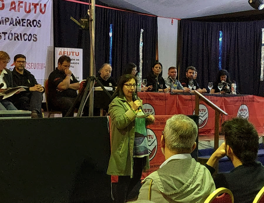 Siguieron saludos de nuestro consejero electo en el CODICEN, Julián Mazzoni; la secretaria general del PIT-CNT, Elbia Pereira; el representante de la CEA (Confederación de Educadores Americanos), Fernando Rodal y del compañero jubilado Carlos Castelao.